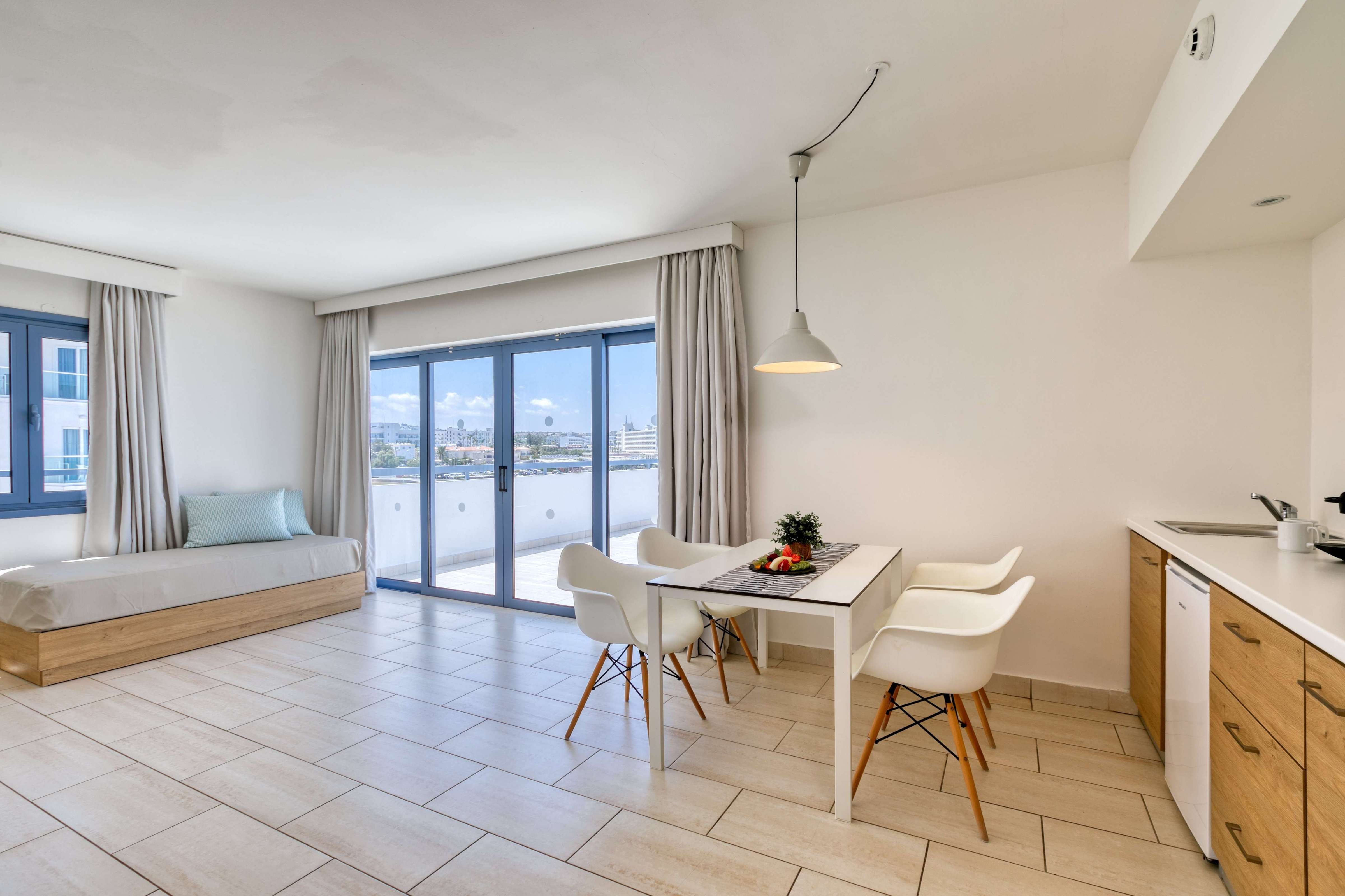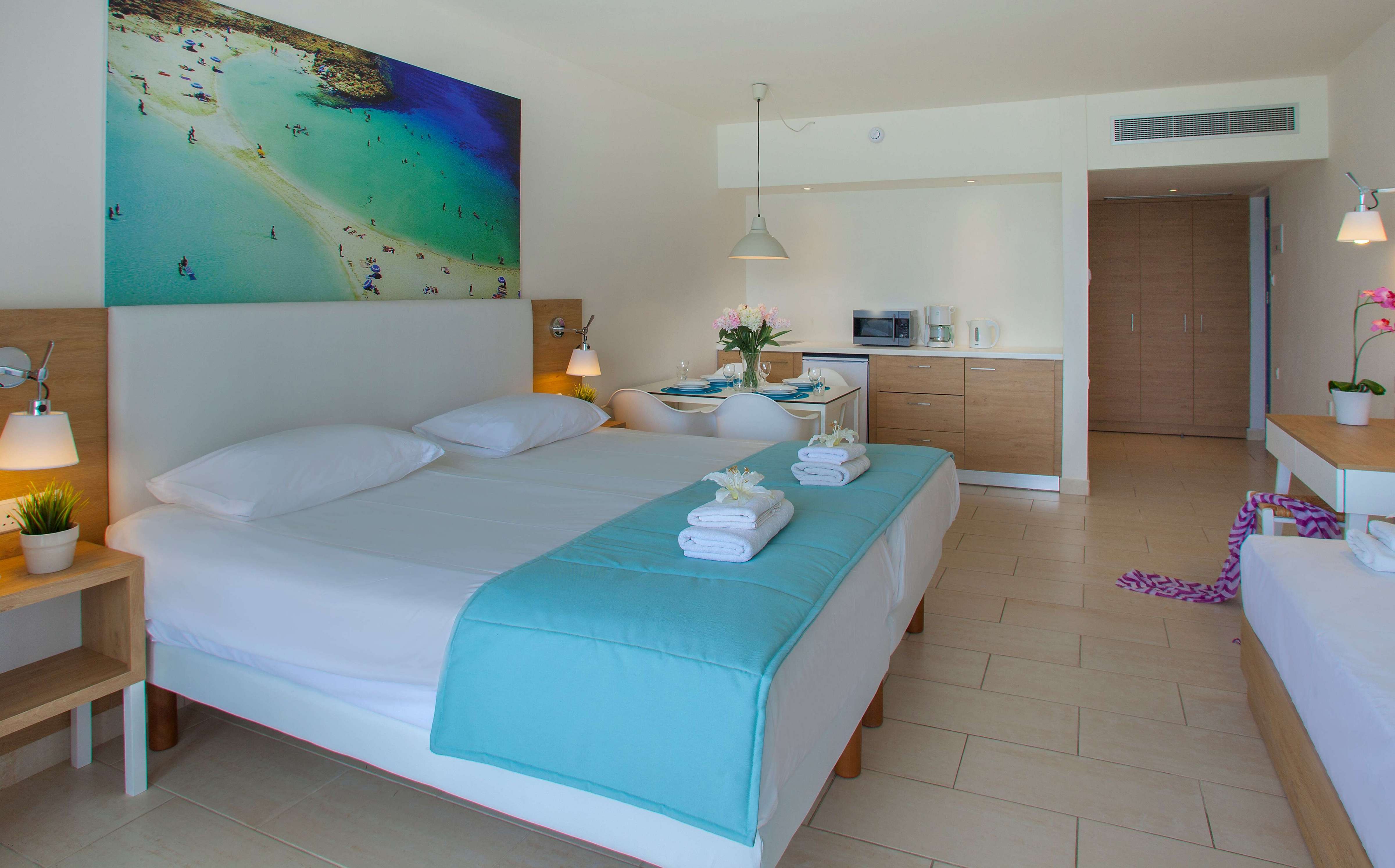 Enjoy comfort and relaxation in our exquisite standard studios, meticulously crafted to cater to the needs of couples or parents vacationing with a child. The rooms include a cozy double bed and the flexibility of twin beds, as well as a sofa bed for added convenience. Step onto your private balcony or terrace to revel in uninterrupted al fresco indulgence, with the option to upgrade to stunning sea views for a quintessential Mediterranean experience, where the azure horizon stretches as far as the eye can see.